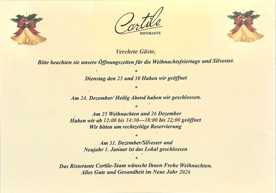 Seit 01 Januar 2017 wurde das Ristorante Cortile